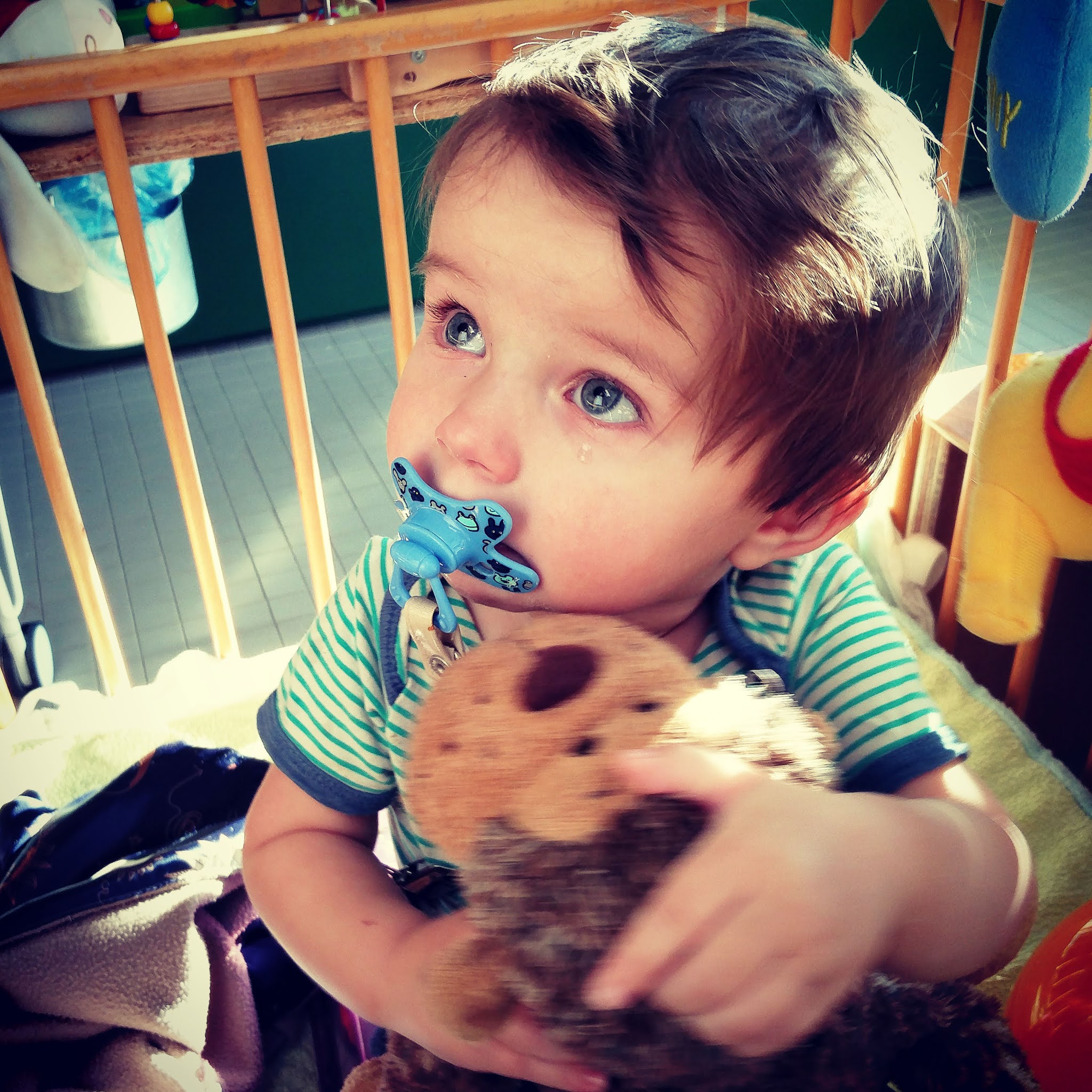 Natuurlijk was het stom om te denken dat we hem daar even konden afzetten, en een uurtje ontspannen terwijl hij zich amuseert bij de andere kinderen die op - en af dingen klauteren en met de bal spelen.